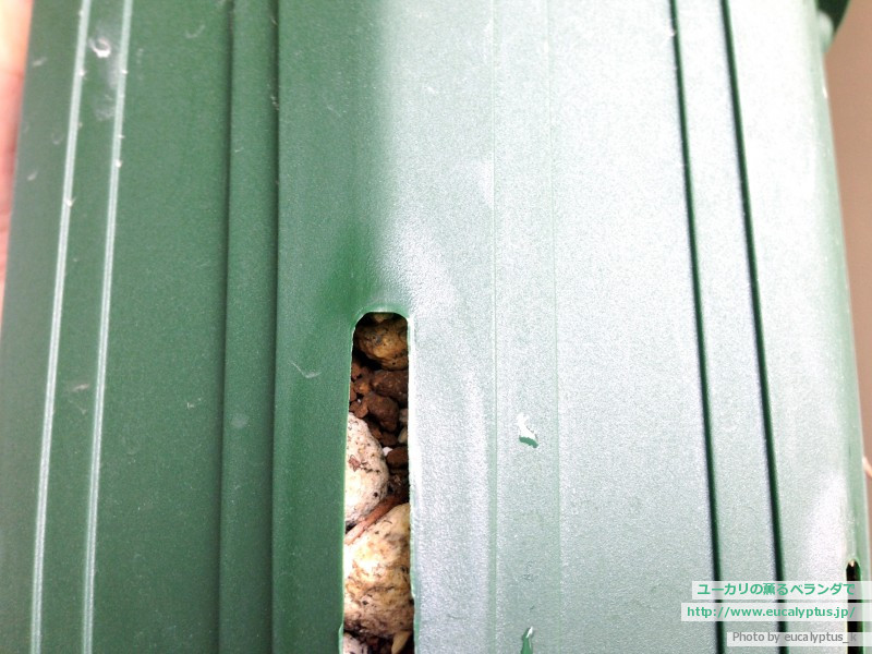 では鉢底のスリットを見てみます。